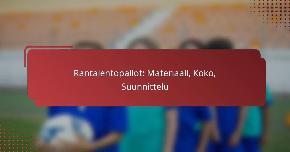 Rantalentopallon harjoituspallot on erityisesti suunniteltu suorituskykyyn hiekkaisissa olosuhteissa, ja ne eroavat merkittävästi perinteisistä jalkapalloista. Niissä on tyypillisesti ainutlaatuisia materiaaleja, kokoja ja suunnitteluja, jotka parantavat kestävyyttä ja pelattavuutta rannalla.